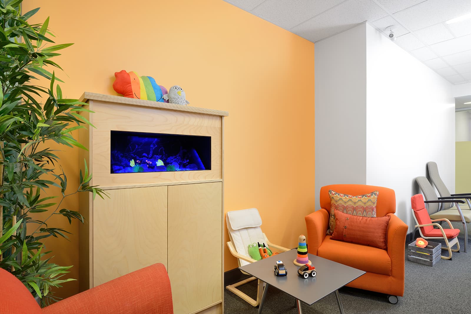 The George Hull Centre for Children and Families is a non-profit organization that provides mental health care to children up to 18 years and their families. Their four family rooms were in need of a makeover. Cold, dated and uncomfortable is not how you should describe a space for healing. We set out, with partners to make a difference.