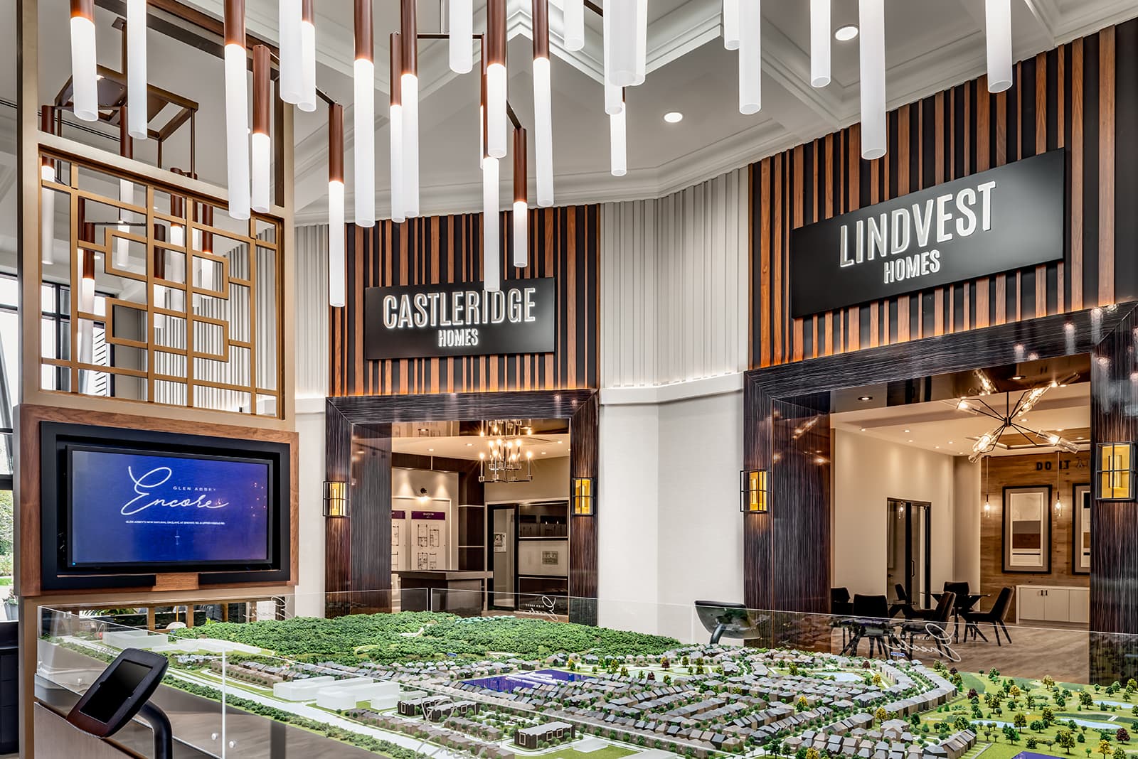 Working with community developer, Argo Development Corporation we started from the ground up. A voluminous structure the size of a small mall, our job was to design the common, public areas and builder sales suites.