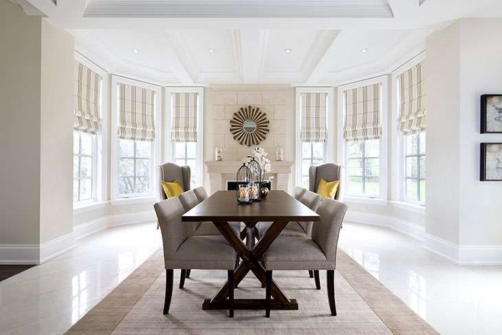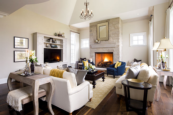 All upholstery and headboards are from the Jane by Jane Lockhart furniture collection and reflect a timeless elegance in form, fabric and colour. A spectacular kitchen and entertaining area, a stone fireplace and custom wall unit from the Jane Lockhart Platinum cabinetry makes this main floor fit for all functions whether it’s family oriented or for larger gatherings.