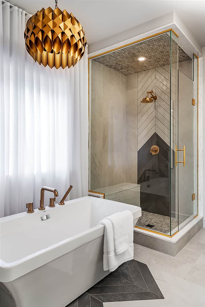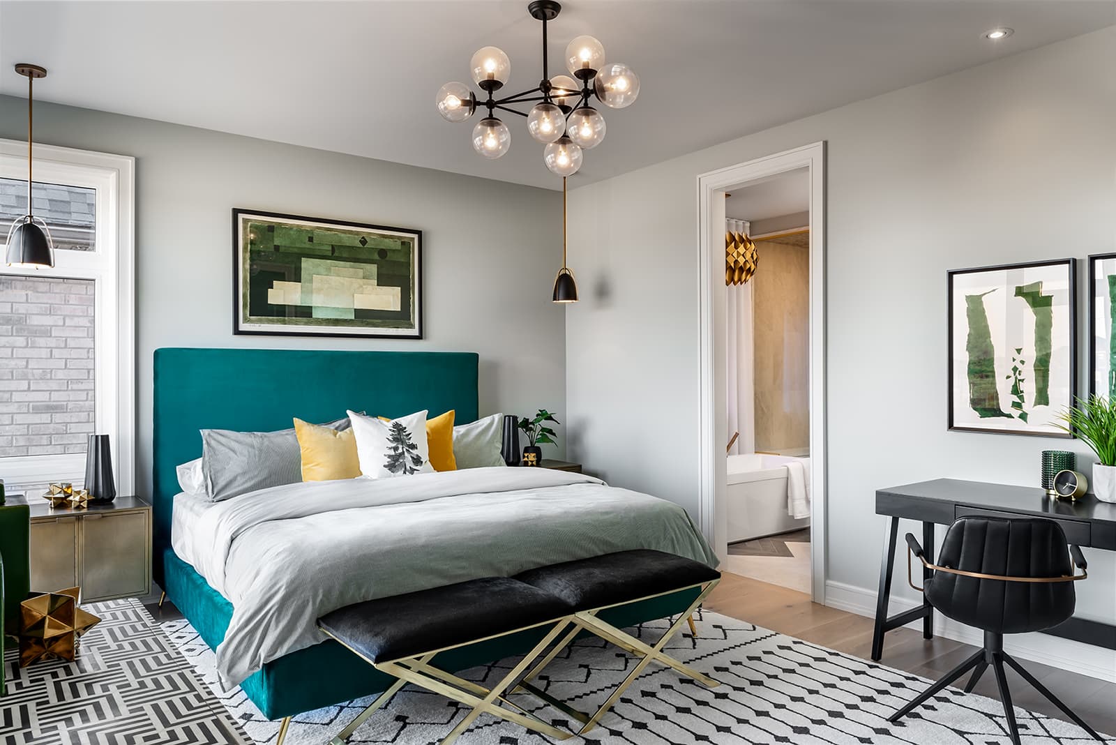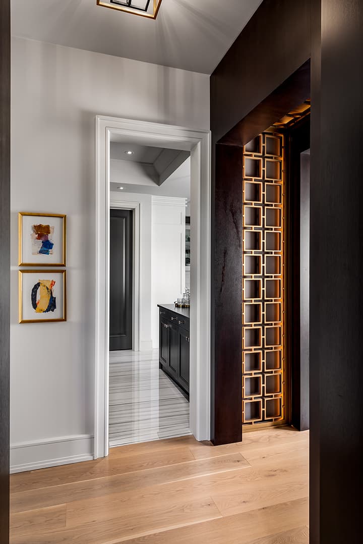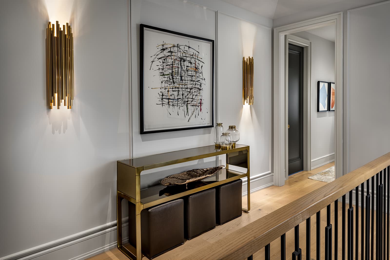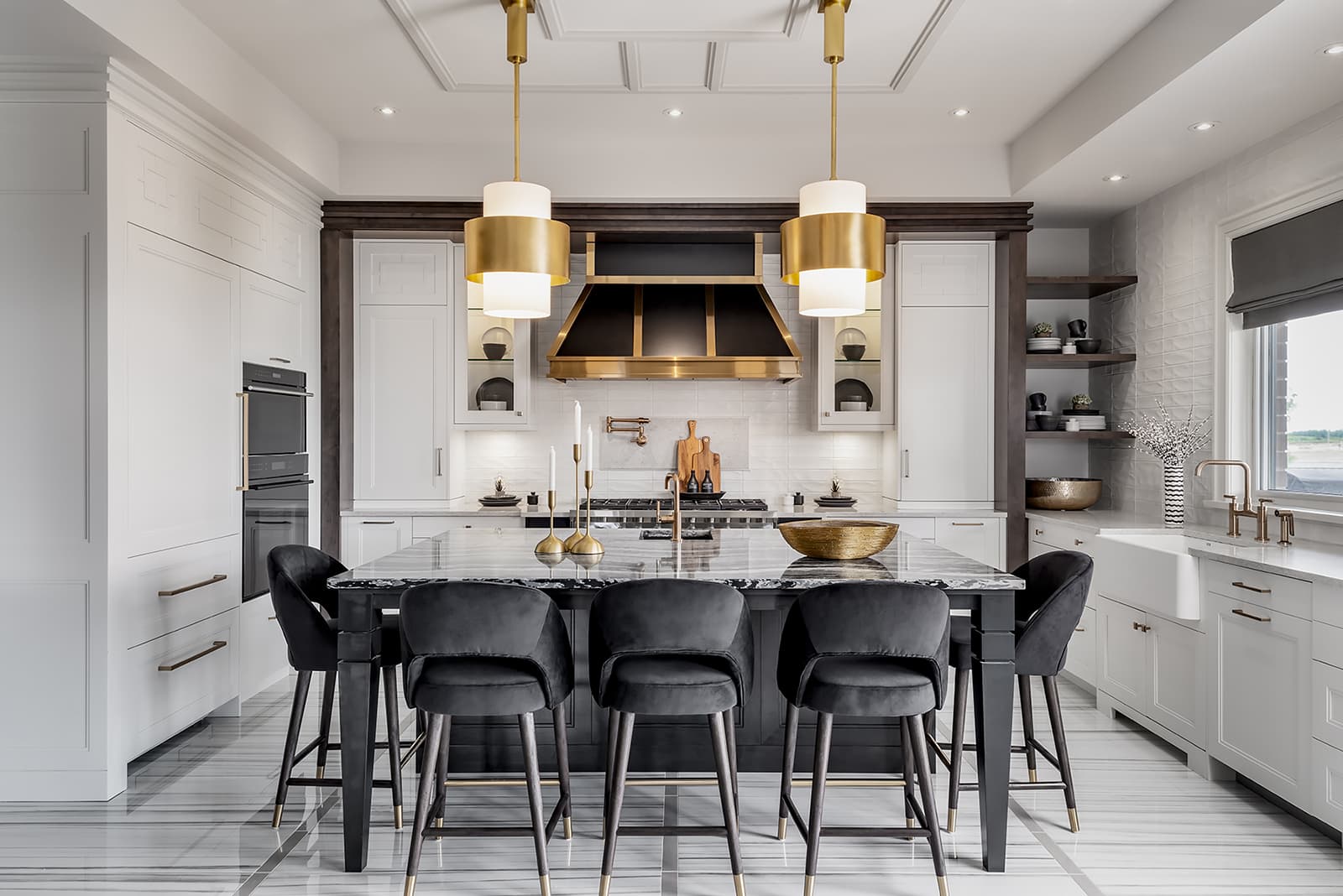 We wanted to create drama and intrigue but still keep the home feeling cozy and easy to live-in. Choosing a palette of smokey greys and gold accents in a variety of textures, sheens and patterns helped us achieve the modern, sophisticated look we were going for.