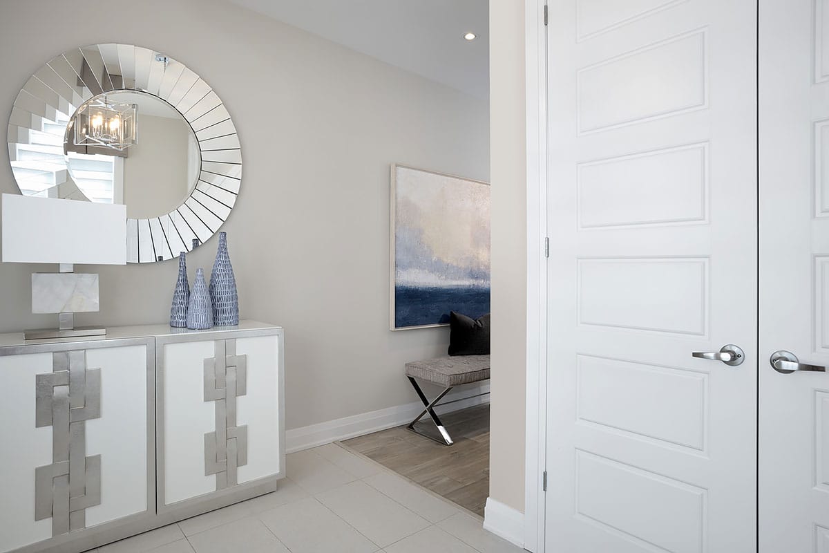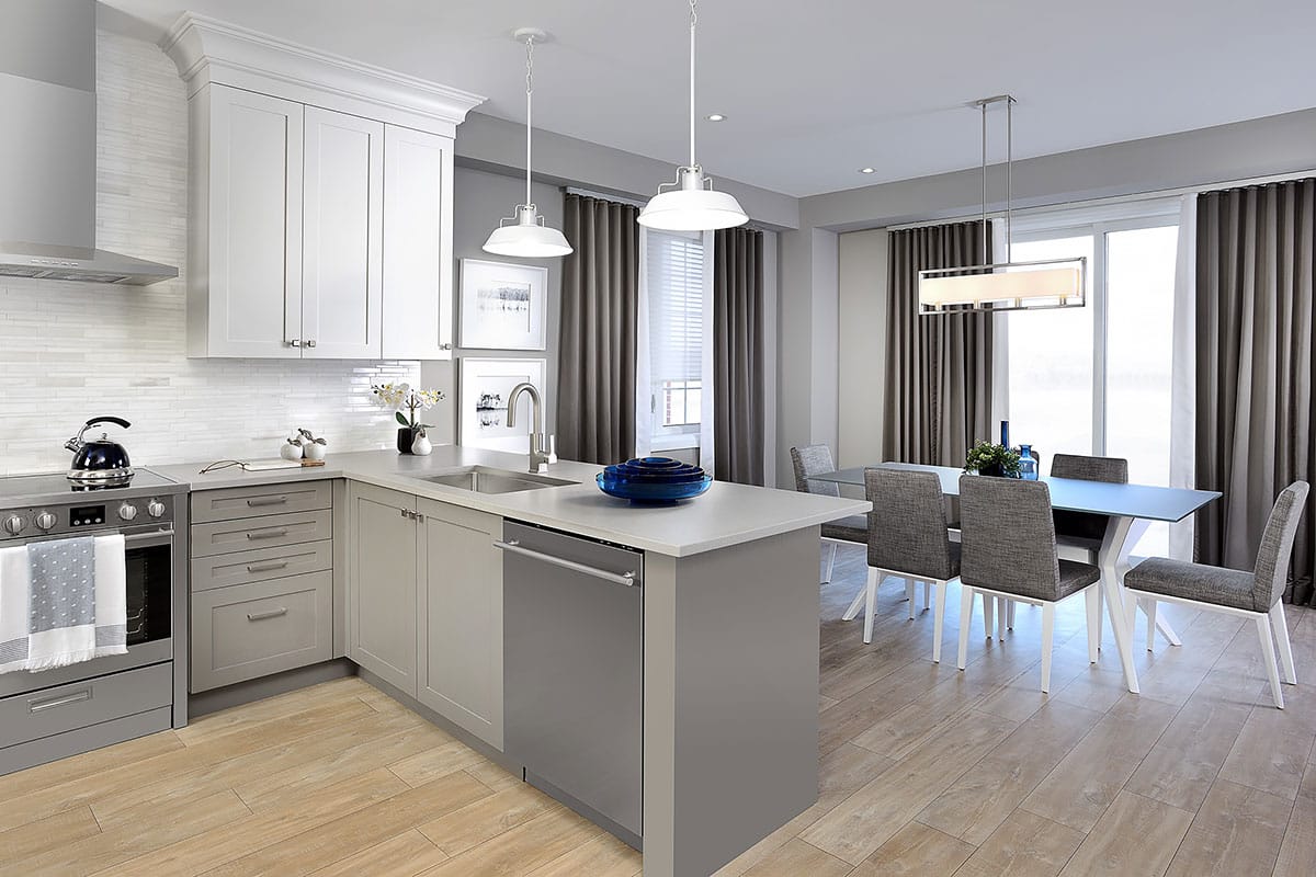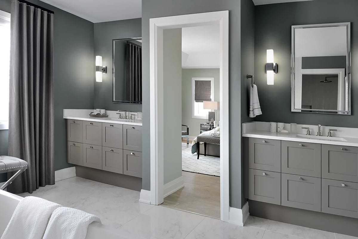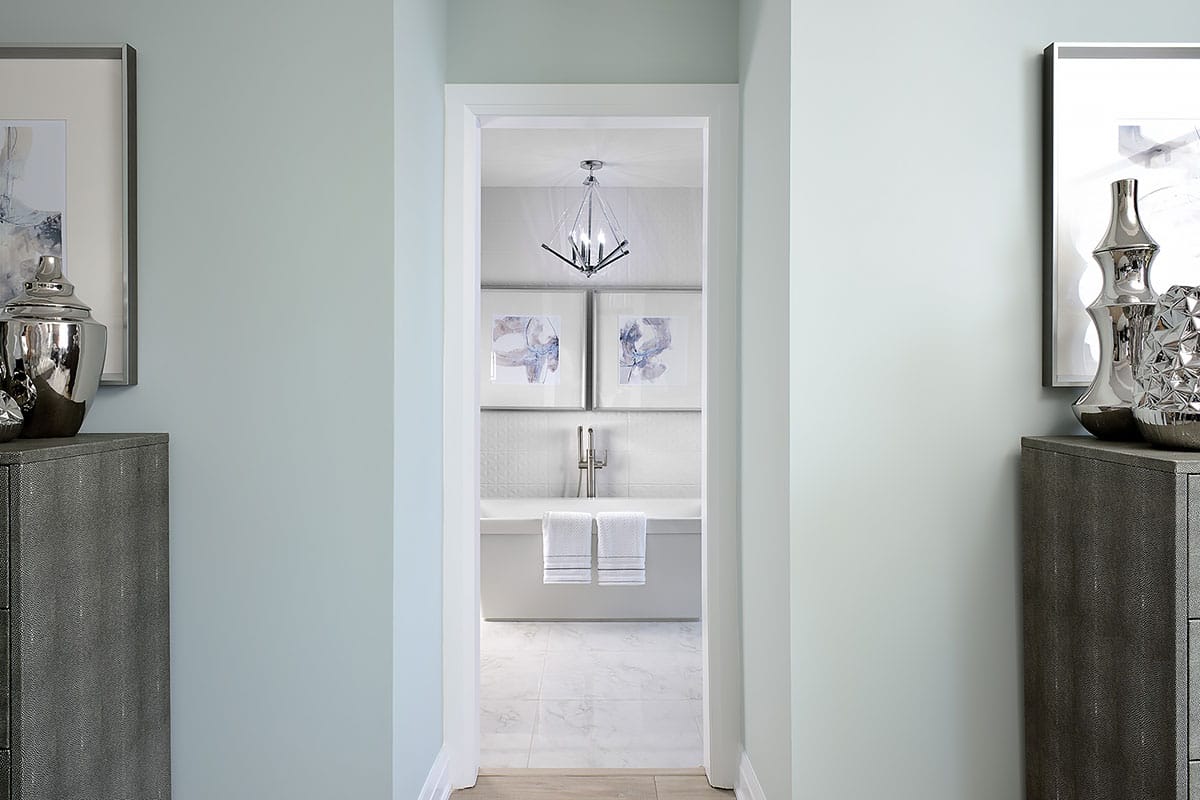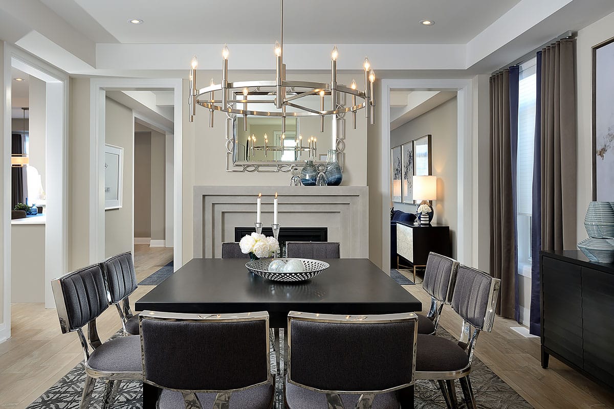 This family home features both modern and classical touches yet reflects a traditional look and feel at its core. Balancing function and style, the rooms connect with a neutral palette, restful on the eye in the dining room and kitchen, the great room adds a surprise pop of luxurious blue that says, “made you look!”.