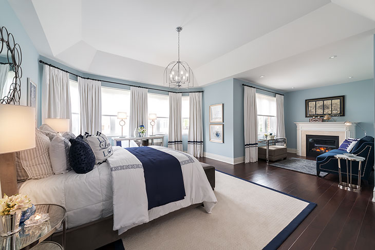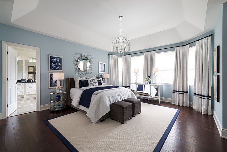 A Sophisticated Man’s Room — This extraordinary bedroom has wonderful ceiling details, amazing wall detail and beautiful furniture. These combine to form the unique mix of warmth and elegance with a nod to classic form and timeless style. (Furniture by GEOVIN Furniture. Room designed by Jeff Palmeter.)