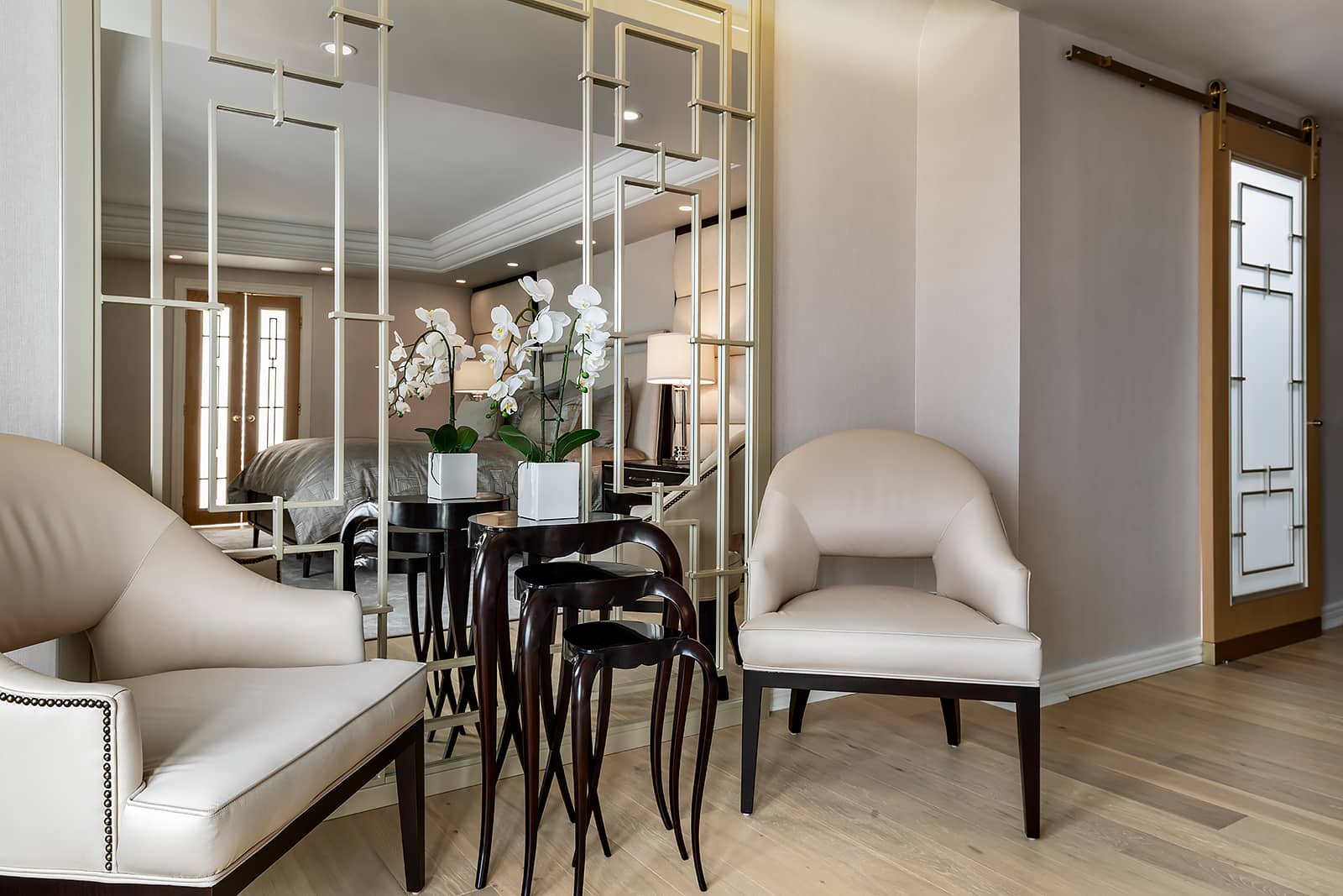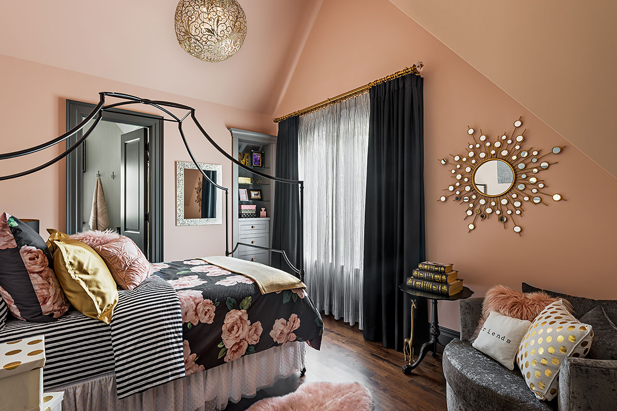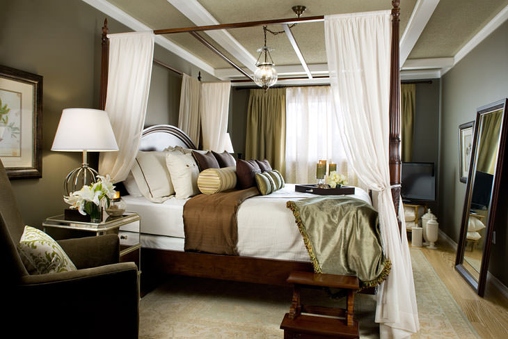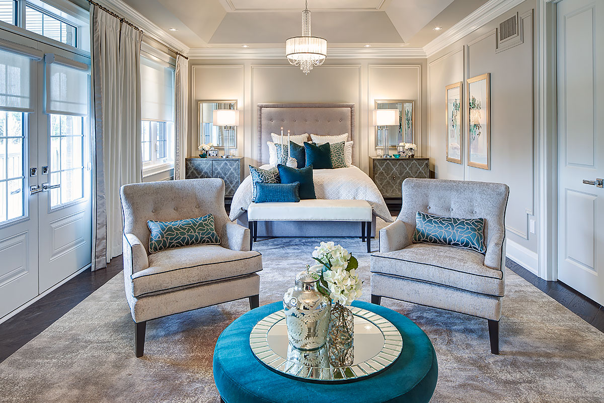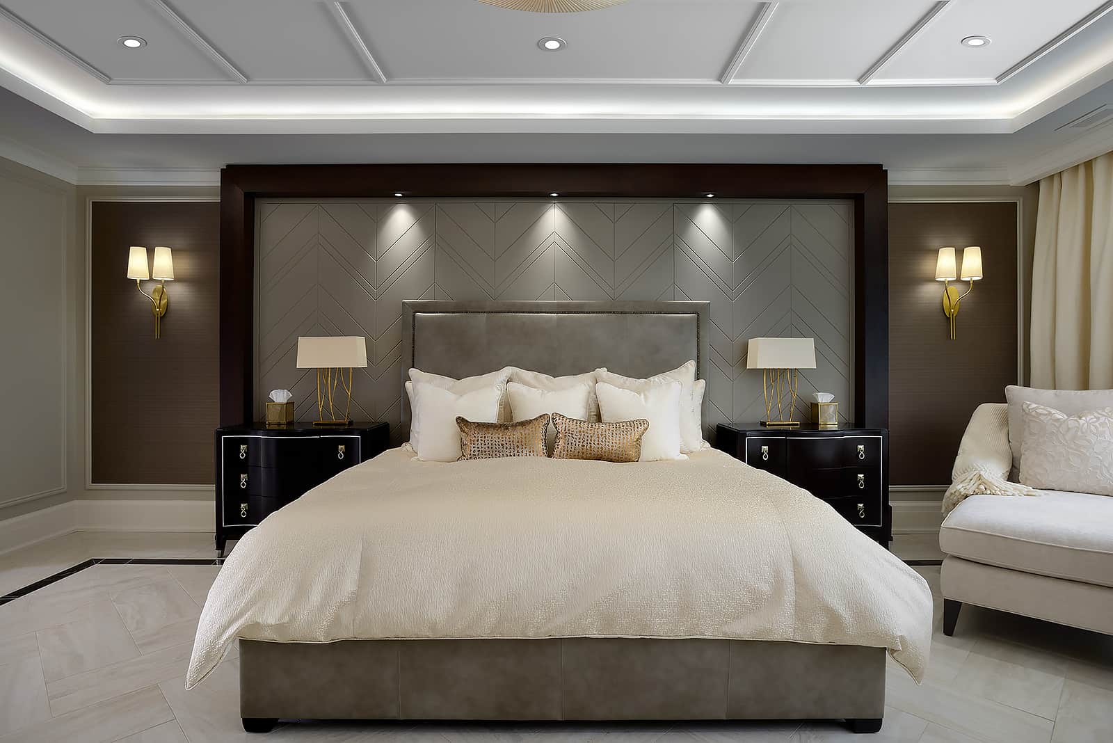 A Sophisticated Man’s Room — This extraordinary bedroom has wonderful ceiling details, amazing wall detail and beautiful furniture. These combine to form the unique mix of warmth and elegance with a nod to classic form and timeless style. (Furniture by GEOVIN Furniture. Room designed by Jeff Palmeter.)