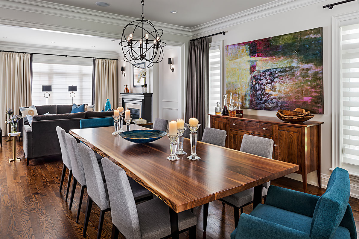 No matter how big the room, comfort needs to be carefully considered for those evening when you wish to linger around the table for hours with family. Keep this room simple and focused… it will help your digestion!