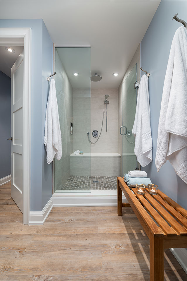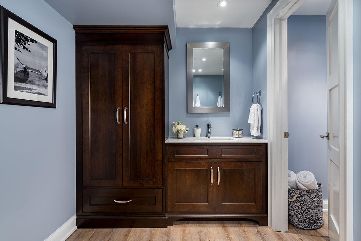 Custom-made cabinetry in the bathroom is hand-crafted from solid, Canadian Maple.