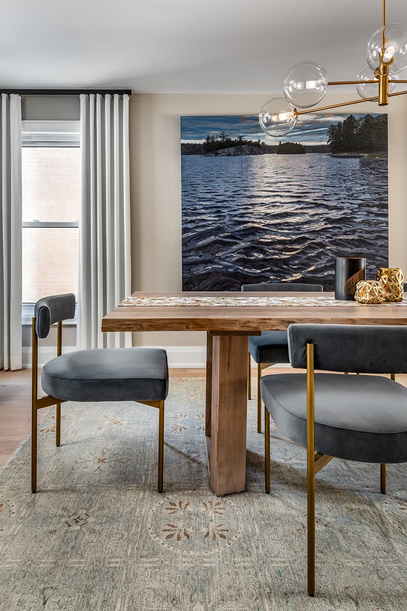This small suburban home was built in the 1980s and didn't have amazing bone structure as it was chopped up inside and definitely outdated. With new structural design the interior on the main floor was fully opened up to flow from one room to the next. New finishes in natural colours and textures, combined with modern-style furniture creates a warm, simple and contemporary interior. A few glamourous touches such as the custom purse closet display and statement lighting give this home a personal feel that is both modern and comfortable.