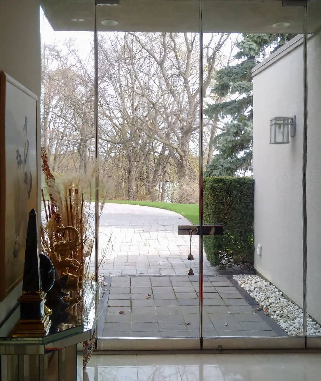 Before: All-glass entry doors and shiny floor tiles were typical for the era of the original home.