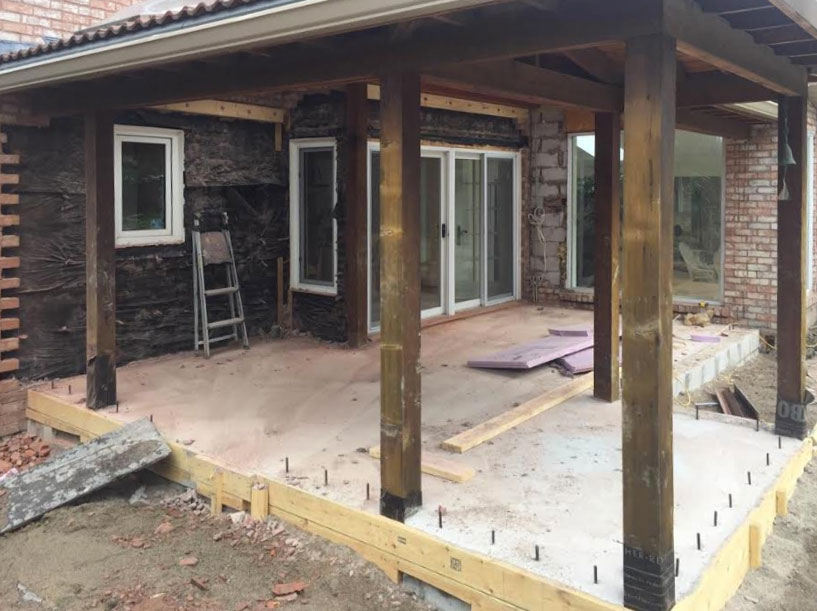 Before: with a new foundation laid, the walls are ready to go up to enclose the porch.